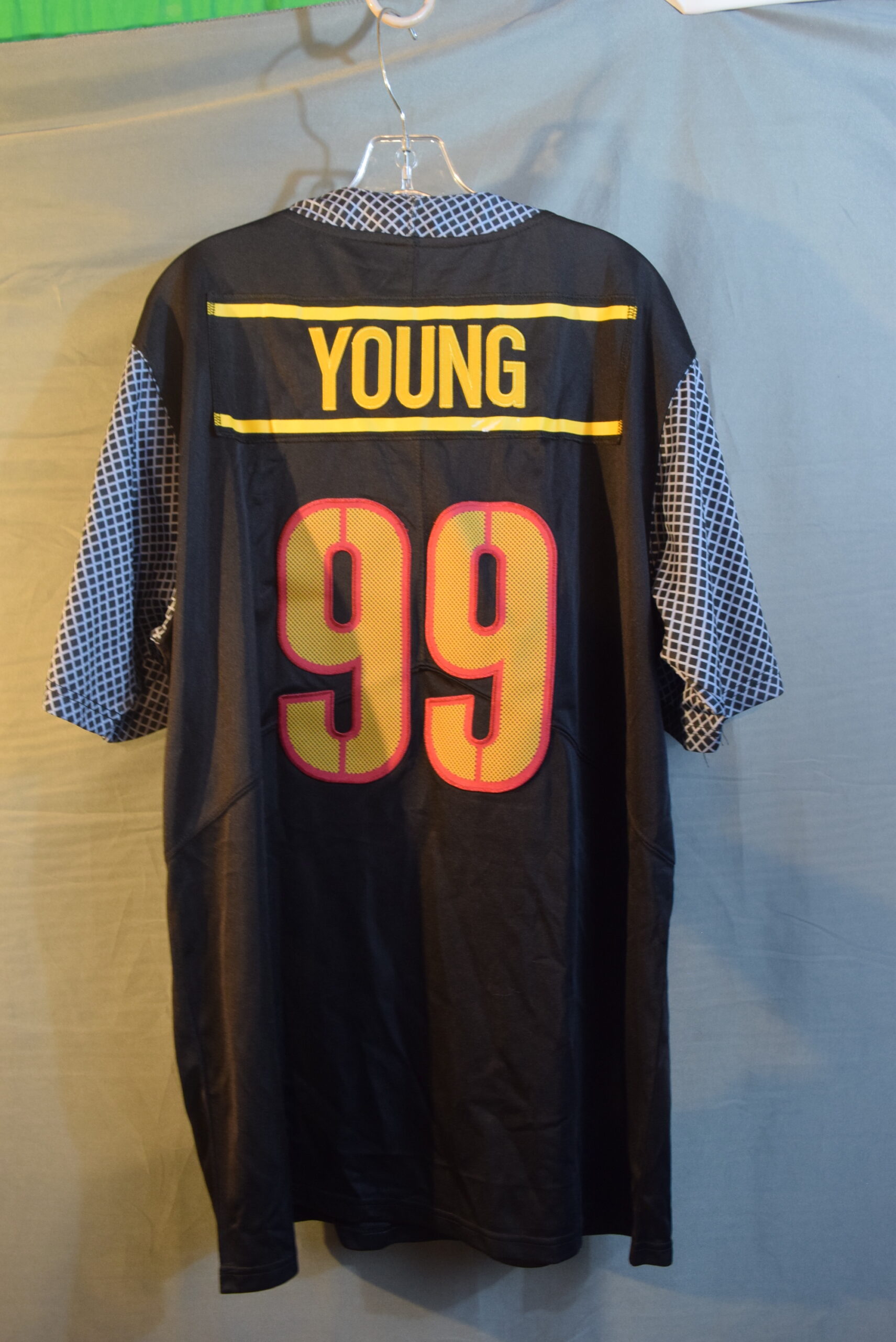 Show your support for the Washington Commanders with this Nike Chase Young #99 Black Alternate Jersey. Perfect for football fans of all ages, this jersey is made for those who want to represent their favorite team in style. The jersey is designed with the iconic Chase brand and features the team’s colors of black and silver.This Youth XL jersey is perfect for fans who want to show off their love for the National Football League (NFL) and the Washington Commanders. Whether you’re heading to a game or just want to show your support for the team, this jersey is the perfect choice. So why wait? Add this Nike Chase Young #99 Black Alternate Jersey to your collection today!